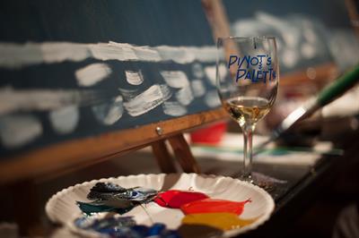 Pinot's Palette Lawrence on the corner of 6th and Wakarusa between Johnny's Tavern West and Dickey's BBQ.