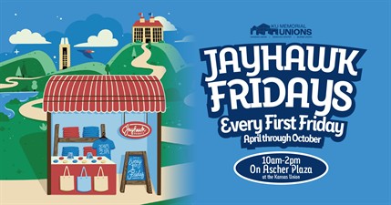 Jayhawk Fridays are designed to showcase local vendors who wish to sell products or services on campus. The event occurs the first Friday of each month, April through October, from 10 AM to 2 PM outside of the Kansas Union.