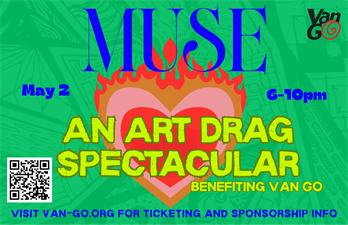 Muse is the first of many themed spring spectaculars benefiting Van Go. Each year will be inspired by a different iconic artist, creating opportunities for local artists to exhibit and sell work while supporting Van Go programming. Local drag queens will walk the runway, outfitted in works by contributing fashion and jewelry designers. Accompanying each drag performance will be a small runway showing of additional fashion, jewelry, and art. Together, we will create a themed celebration—making this a truly collaborative, artist-driven series.