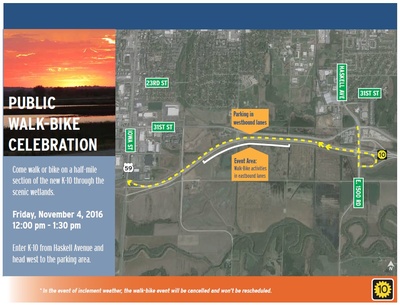 Please join us, Friday, Nov. 4, at 10am, for a ribbon cutting celebration to officially open the East Leg of the K-10 South Lawrence Trafficway!